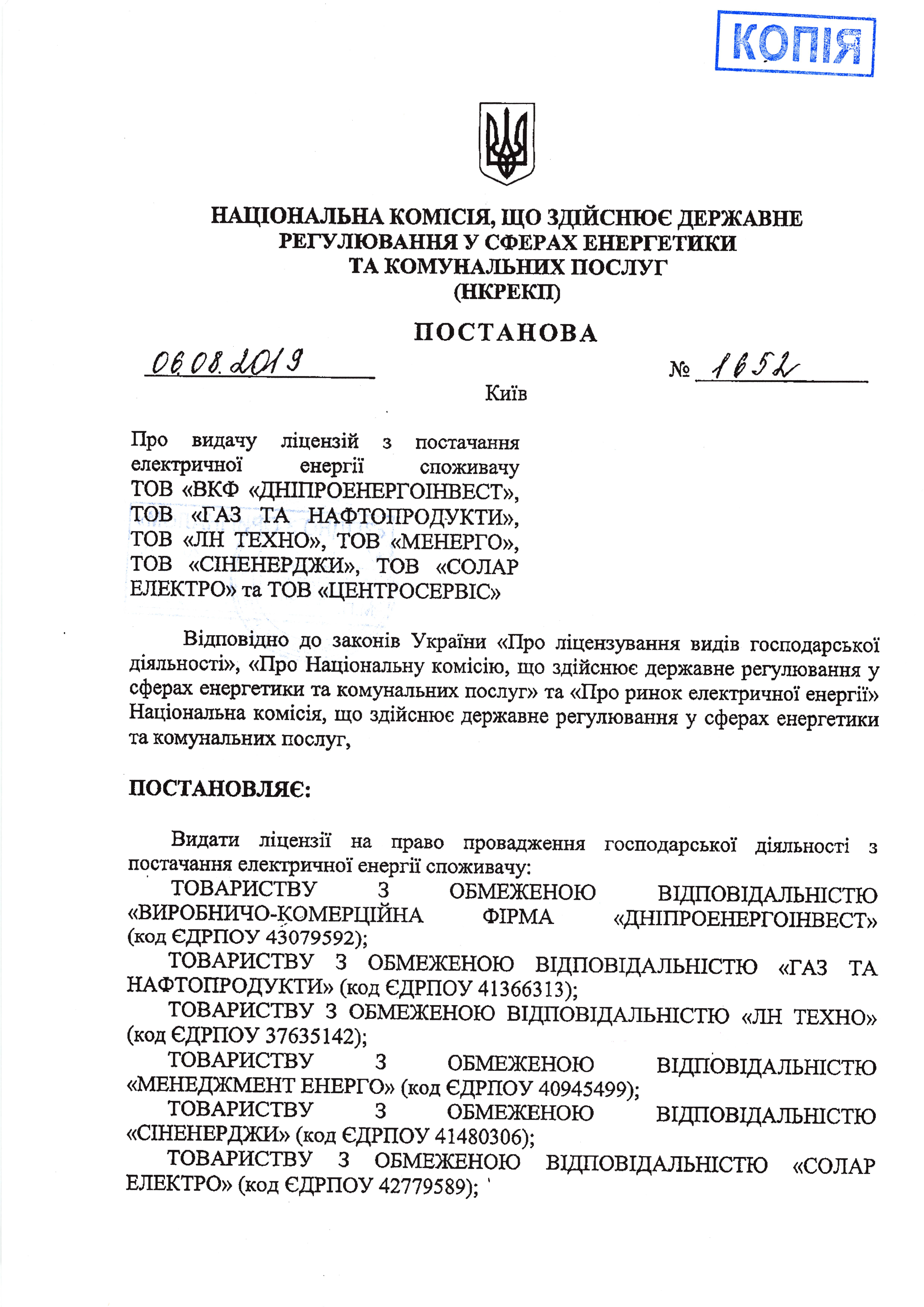 Інформація щодо дотримання стандартів якості надання послуг електро постачальником